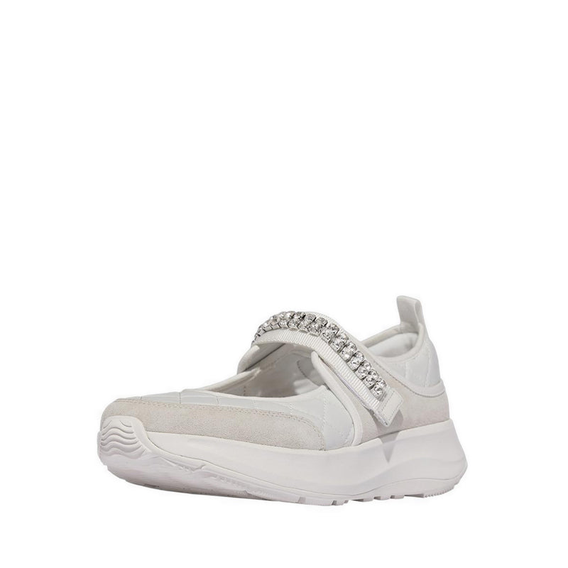 The adjustable hook-and-loop adjustable straps provide a personalised fit whilst the crystal detailing catches the light beautifully. Crafted from premium suede and mixed materials with quilted panels that create visual depth. Built on FitFlop's signature Microwobbleboard™ midsole, these Mary Janes deliver triple-density cushioning that follows the three stages of your step. The anatomically contoured footbed helps optimise your body's natural alignment for all-day energy and comfort.