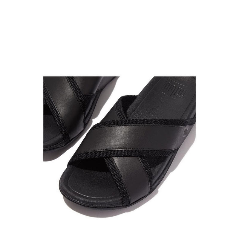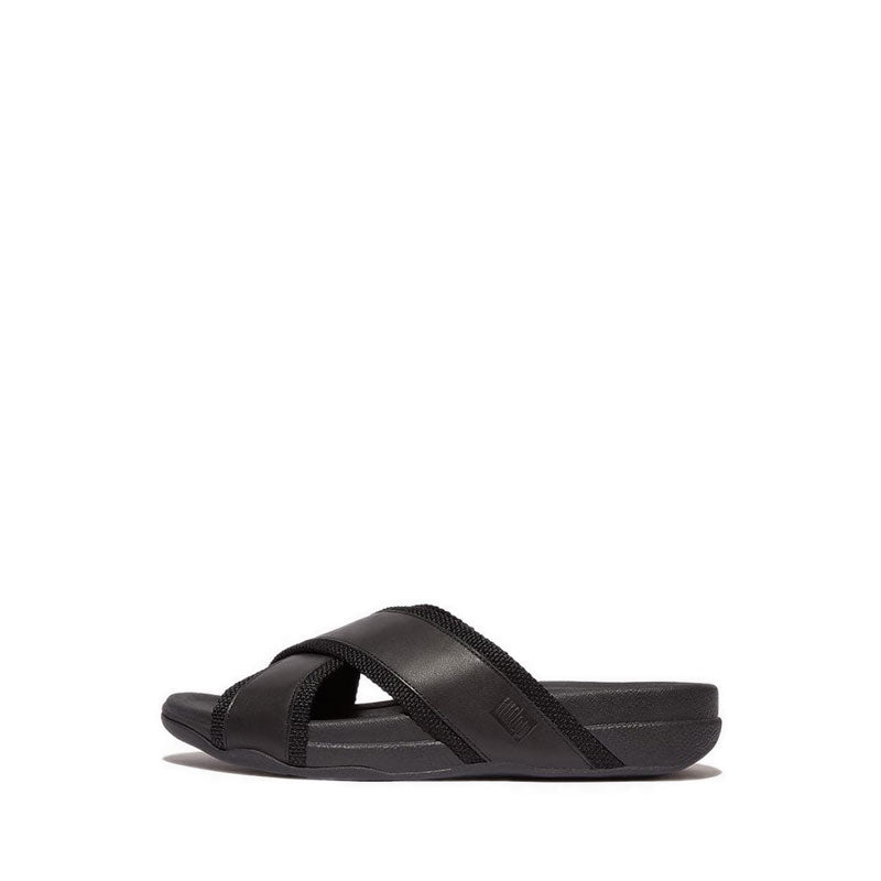 Mens Webbing/Leather Cross Slides