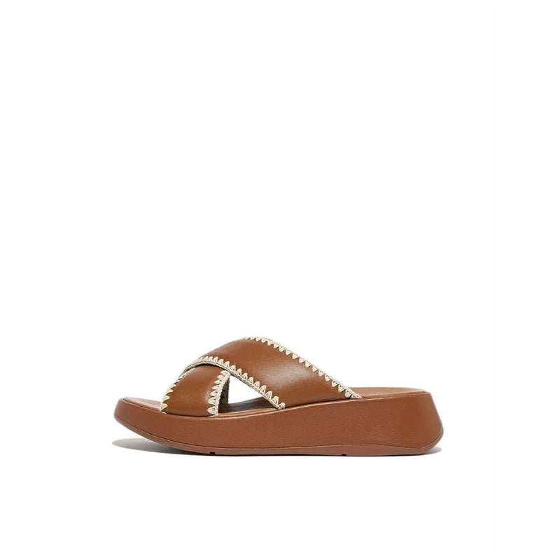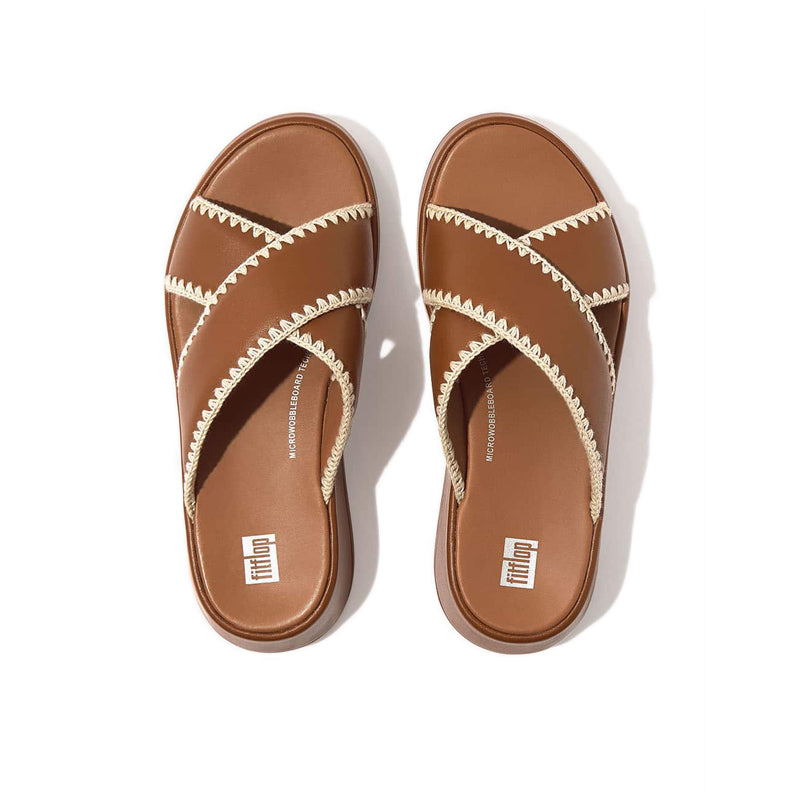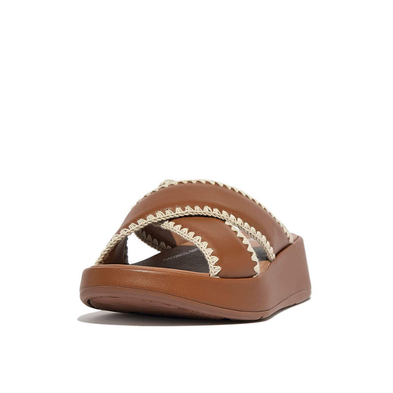 These slides are elevated in every sense. FitFlop have set sleek criss-cross straps on a chunky, yet lightweight, sole. Simple. Easy. Chic. Fashioned in smooth high-quality leather. This season, edged in crochet stitching for refined craft detail (and a subtle bohemian touch). Leather-wrapped soles and soft all-leather linings enhance the laidback-luxe feel. On a flatform-version of FitFlop's triple-density Microwobbleboard™ midsole – delivering ergonomic all-day comfort, cloud-like cushioning, and longer-looking legs. Unbeatable underfoot. Delicately detailed. Slip on to instantly lift your look.