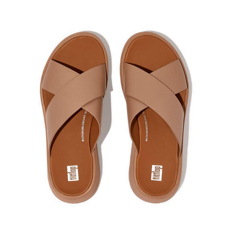 These stacked slides will instantly lift your everyday styling. We've set ultra-sleek criss-cross straps on a chunky, yet lightweight, sole. Cool. Easy. Modern. Crafted in smooth high-quality leather, with no stitch lines for a super clean finish. All-leather linings are soft against your feet. On a flatform-version of our triple-density Microwobbleboard™ midsole – delivering unbeatable ergonomics, cloud-like cushioning (and longer-looking legs). Contemporary, comfortable and – thanks to the pared back aesthetic and classic colors – they'll work with virtually everything in your closet.
