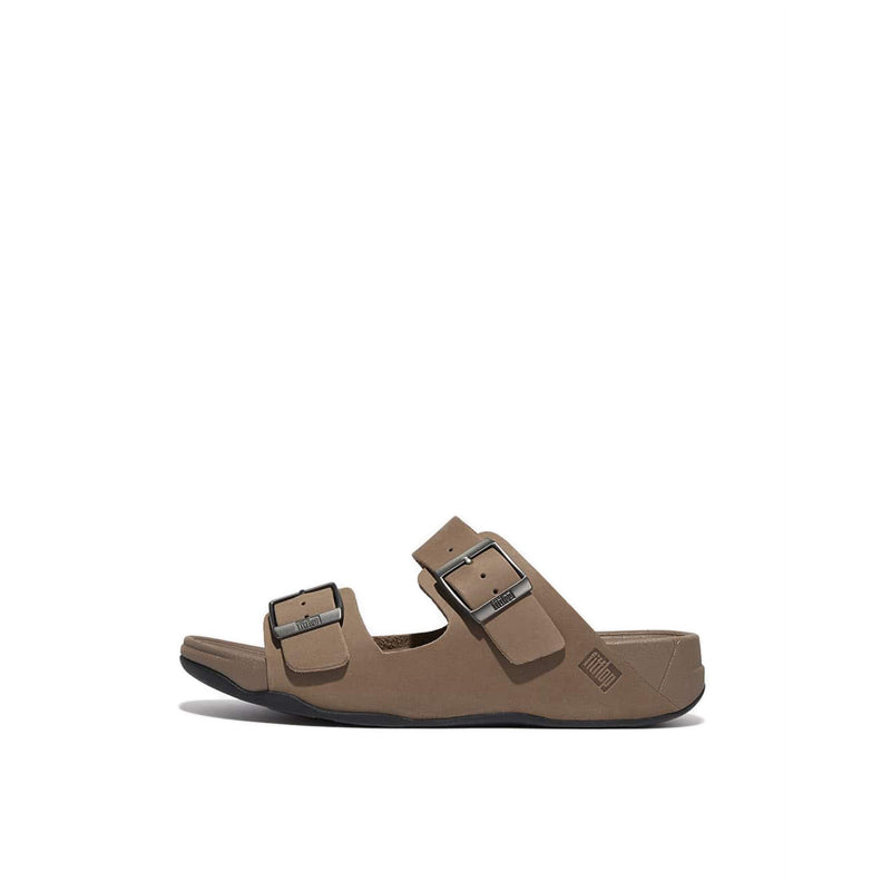 Looking for laidback-stylish, casual sandals? These classic leather two-bar slides tick every (shoe) box. Multi-adjustable straps let you customize the fit, with brushed-pewter buckles adding refinement. This version crafted from a thick unlined oiled nubuck that feels light, soft, and moulds to your feet (so these get even more comfortable over time). And looks the part with its matt waxy finish and clean raw edges. All on FitFlop's ergonomic triple-density Microwobbleboard™ midsoles for pressure-diffusion, impact reduction, and amazing all-day comfort. Other sandals don't stand a chance.
