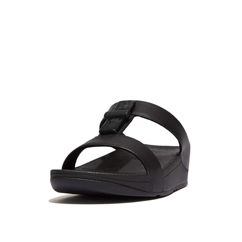 Slide your feet into something more sophisticated. These Fino slides combine a slinky, foot-flattering H-bar design with FitFlop's ultra-cushioning, pressure-diffusing Microwobbleboard™ midsoles for amazing all-day comfort. Here crafted in supple leather. With elegant adornment in the form of a 'lock' fashioned from glossy marbled resin and recycled metal with a matt rubberized finish. Slip on to add refined sophistication to whatever you're wearing.