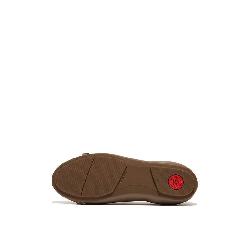 These ballerinas will have you in a whirl. Looking like classic ballet flats but feeling like sneakers – you’ll wonder just where FitFlop fit their comfort tech. Think genius design: sleek featherlight midsoles, anatomically contoured to support your feet, with FitFlop's Dynamicush™ technology hidden in the forefoot for all-day high-rebound cushioning. This version, crafted in premium butter-soft nappa leather, features a loop of shimmering micro 'crystals' and beads for subtle sparkle. With an elasticated top line giving a foot-hugging fit. Beautiful day-to-evening.