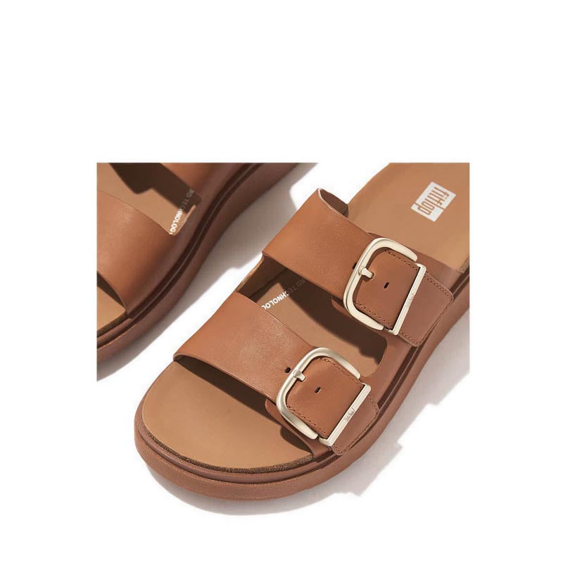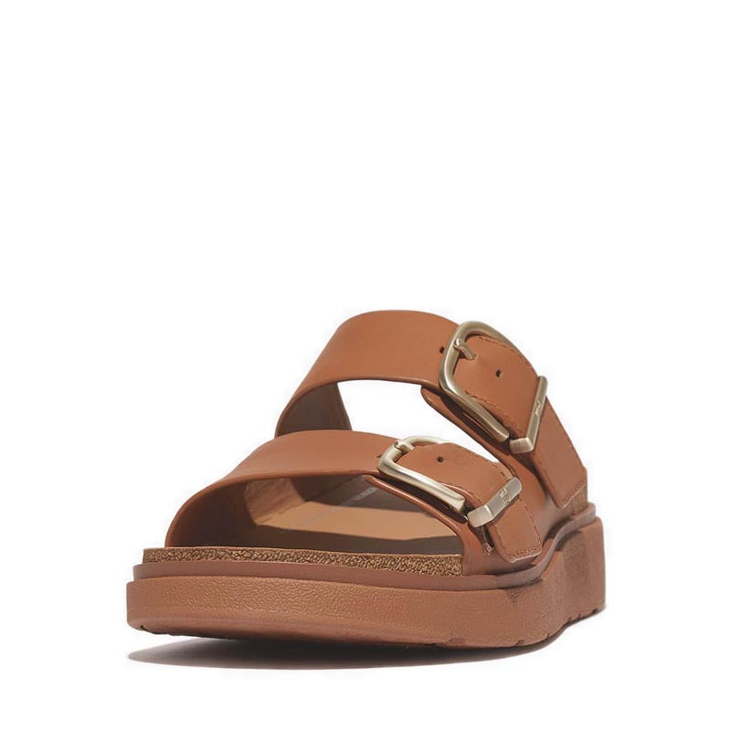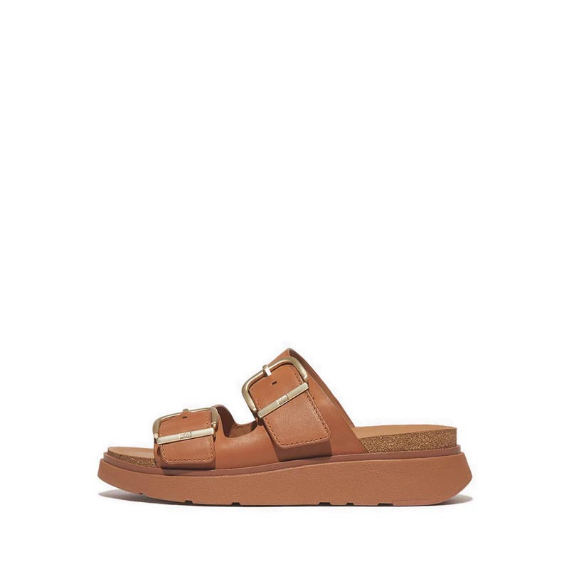 Buckle Two-Bar Leather Slides