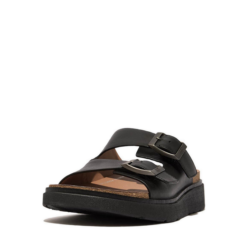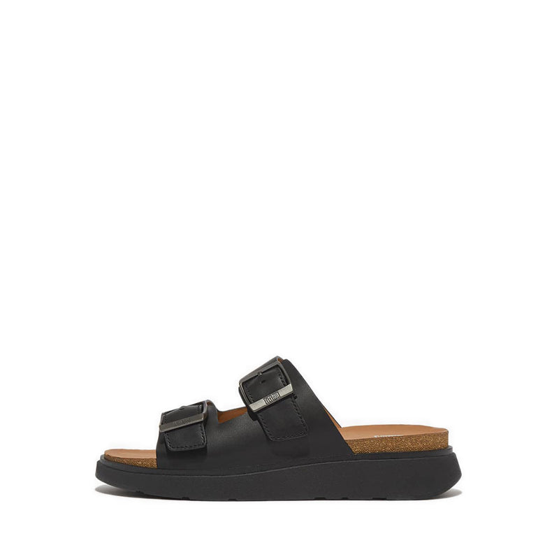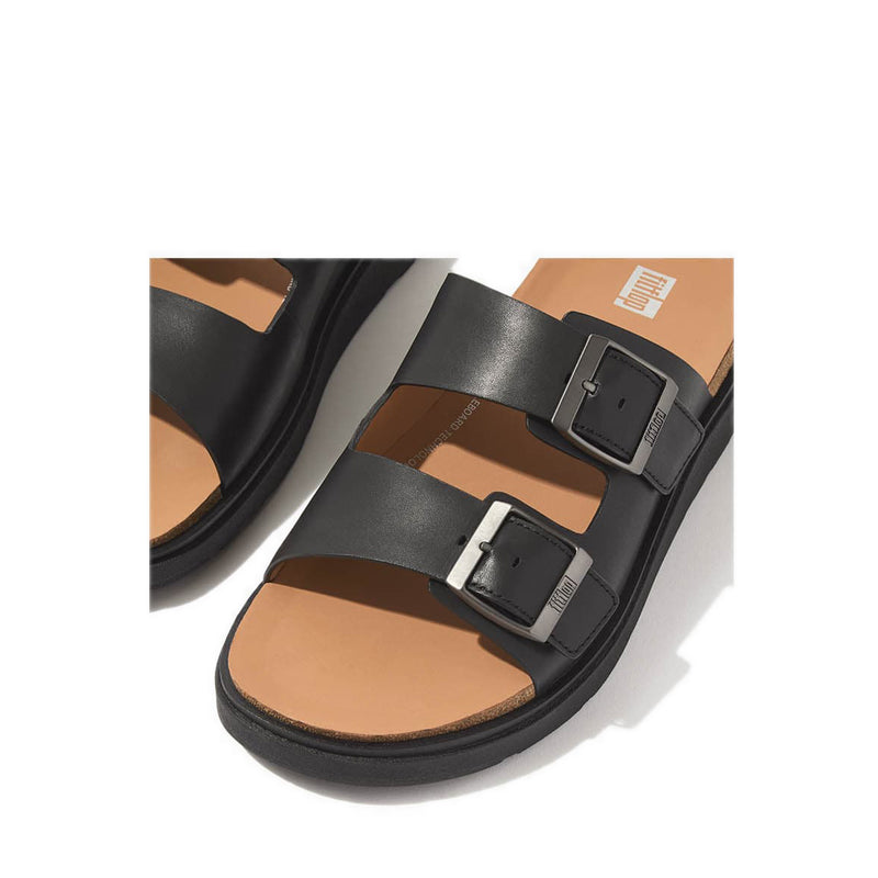 Mens Buckle Two-Bar Leather Slides