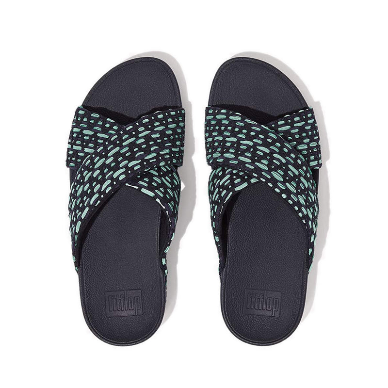 FitFlop's Lulu criss cross slides are classics. Perennially popular, they're softly padded, foot-flattering, and are engineered with FitFlop's supercushioning, pressure-diffusing Microwobbleboard™ midsoles for unbeatable underfoot comfort. This season, in a gorgeously textured fabric, featuring a zigzag pattern and tonal textile 'ribbons' interwoven through the base. Summery and super pretty for walks around town, relaxed weekends, holidays – they're as easy on the eye as they are on your feet.