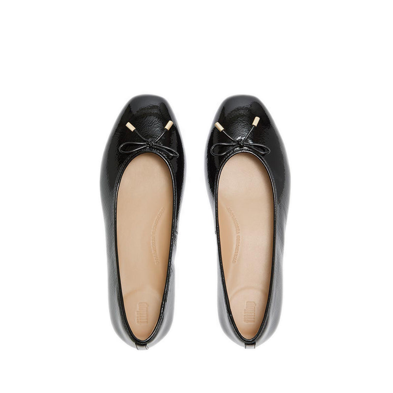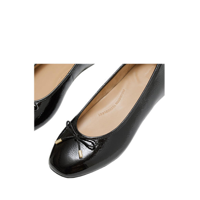BOW TEXTURED PATENT-LEATHER BALLET FLATS