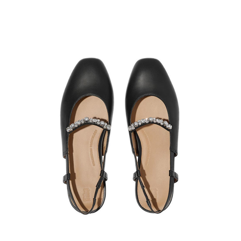 PEARLS-AND-CRYSTAL LEATHER SLINGBACKS